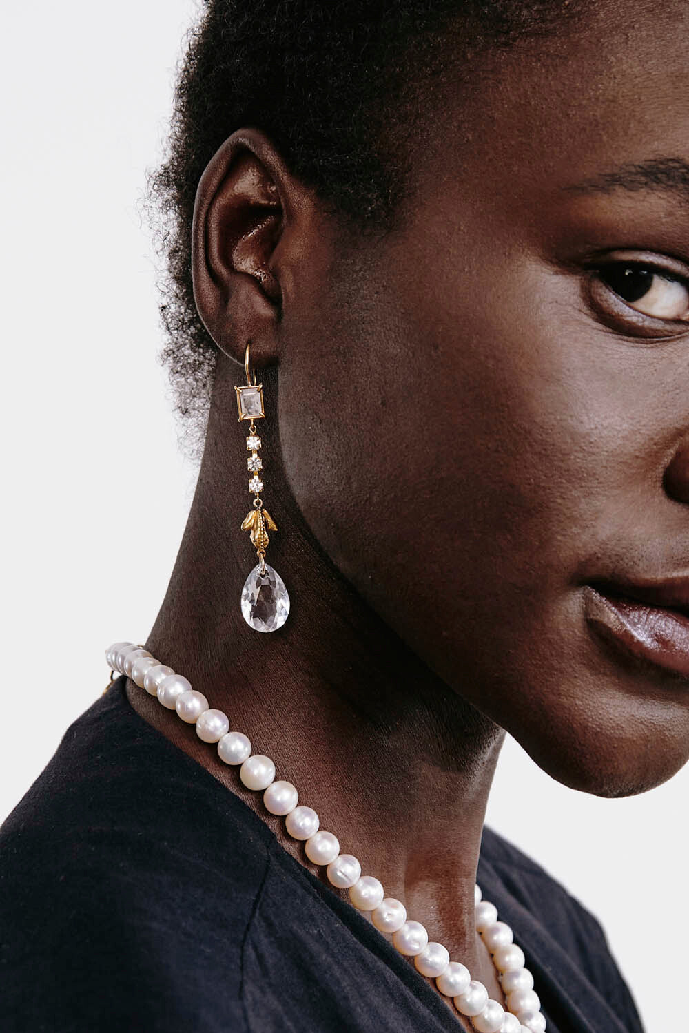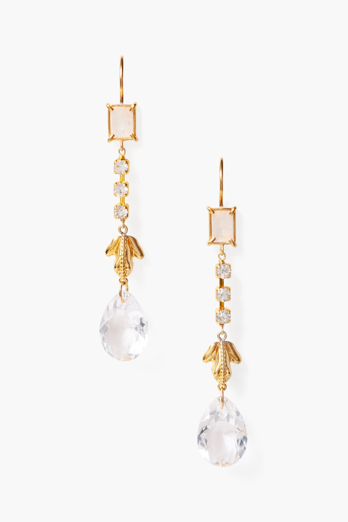 Radiant and refined, these Ansley Earrings are designed to dazzle with every step down the aisle. A luminous square-cut stone anchors the design, cascading into a delicate row of shimmering crystals, finished with an ornate golden flourish and a striking teardrop crystal drop. Perfect for the modern bride who craves elegance with a touch of drama, these earrings are a statement of timeless beauty.
