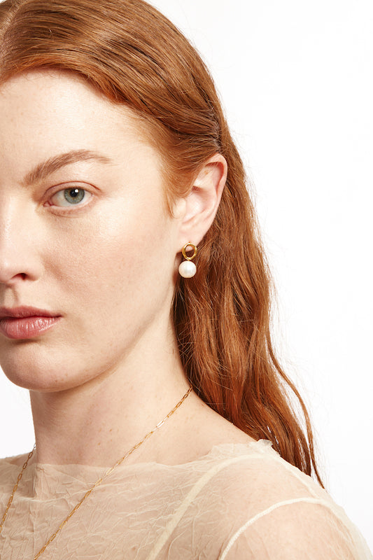 Modern simplicity meets classic romance. These earrings feature sculptural gold circles paired with luminous pearls — a quiet statement with just the right amount of polish. Lightweight and endlessly versatile, they’re perfect for ceremony mornings, courthouse vows, or dressed-down days with a bridal twist.