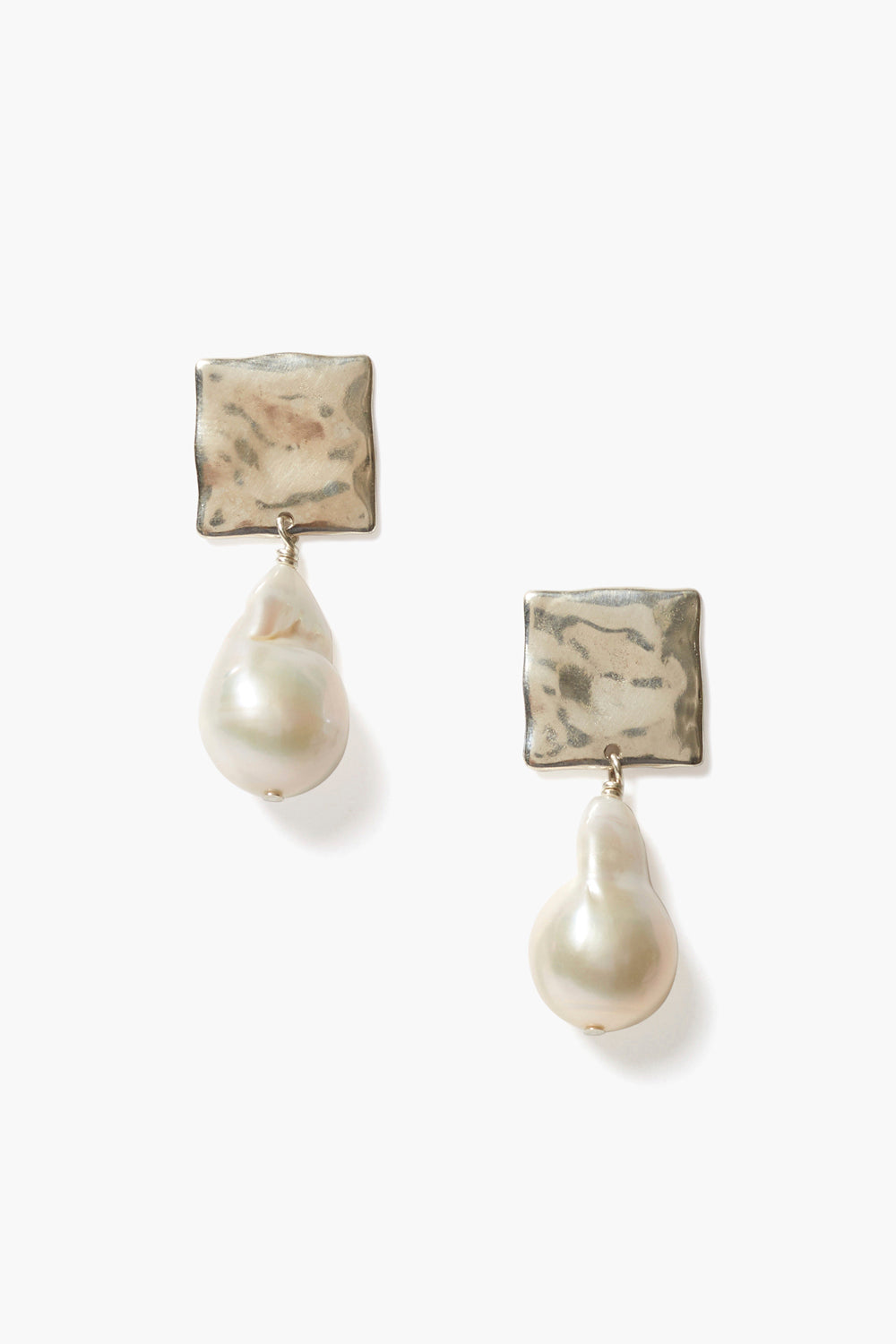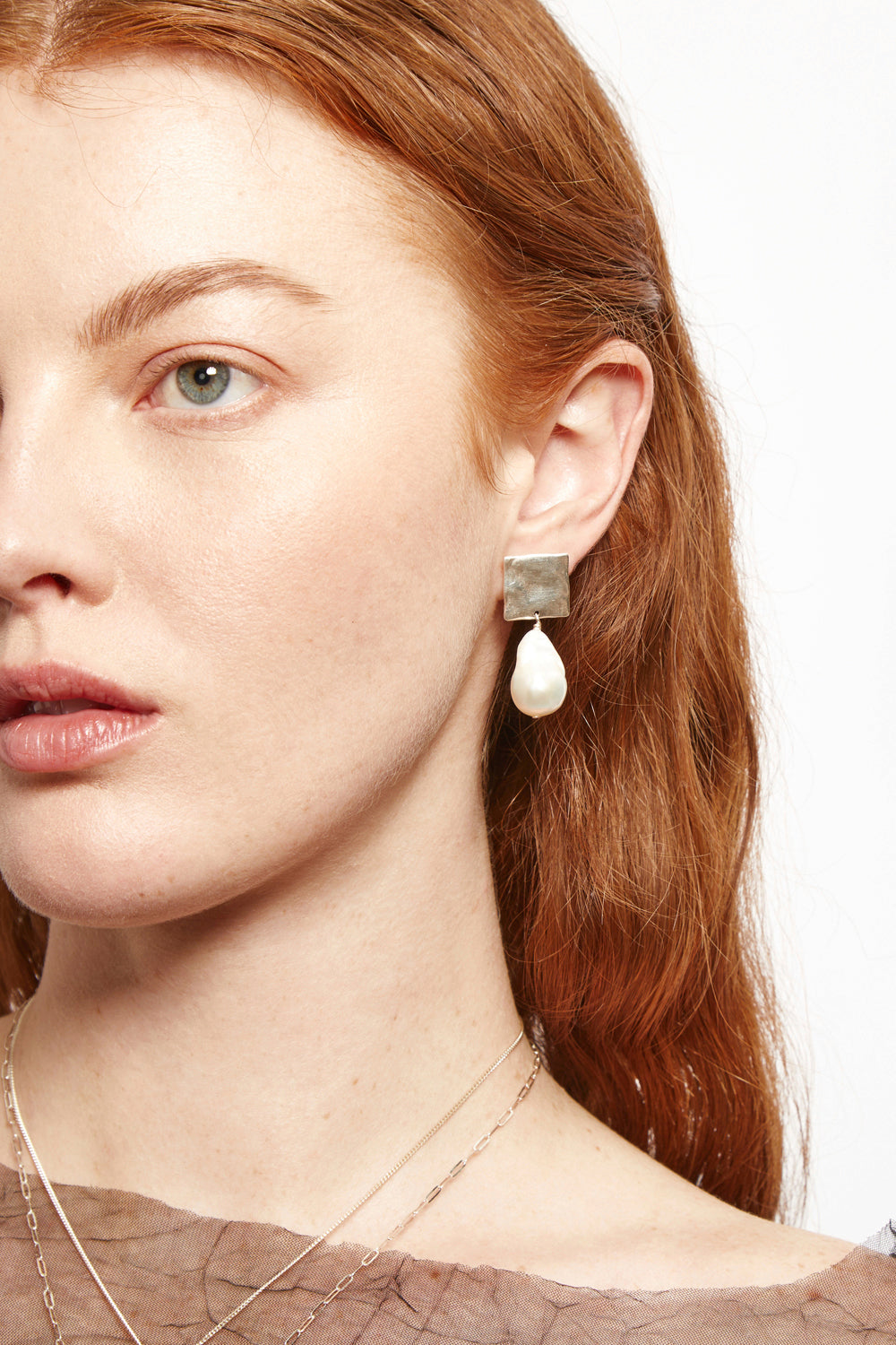 Bold yet timeless, these earrings are where modern artistry meets natural elegance. A hammered square stud and luminous freshwater pearl drop add a soft, organic contrast. The result is a striking balance of texture and form—perfect for elevating your bridal look. Effortless statement-making with a refined touch.