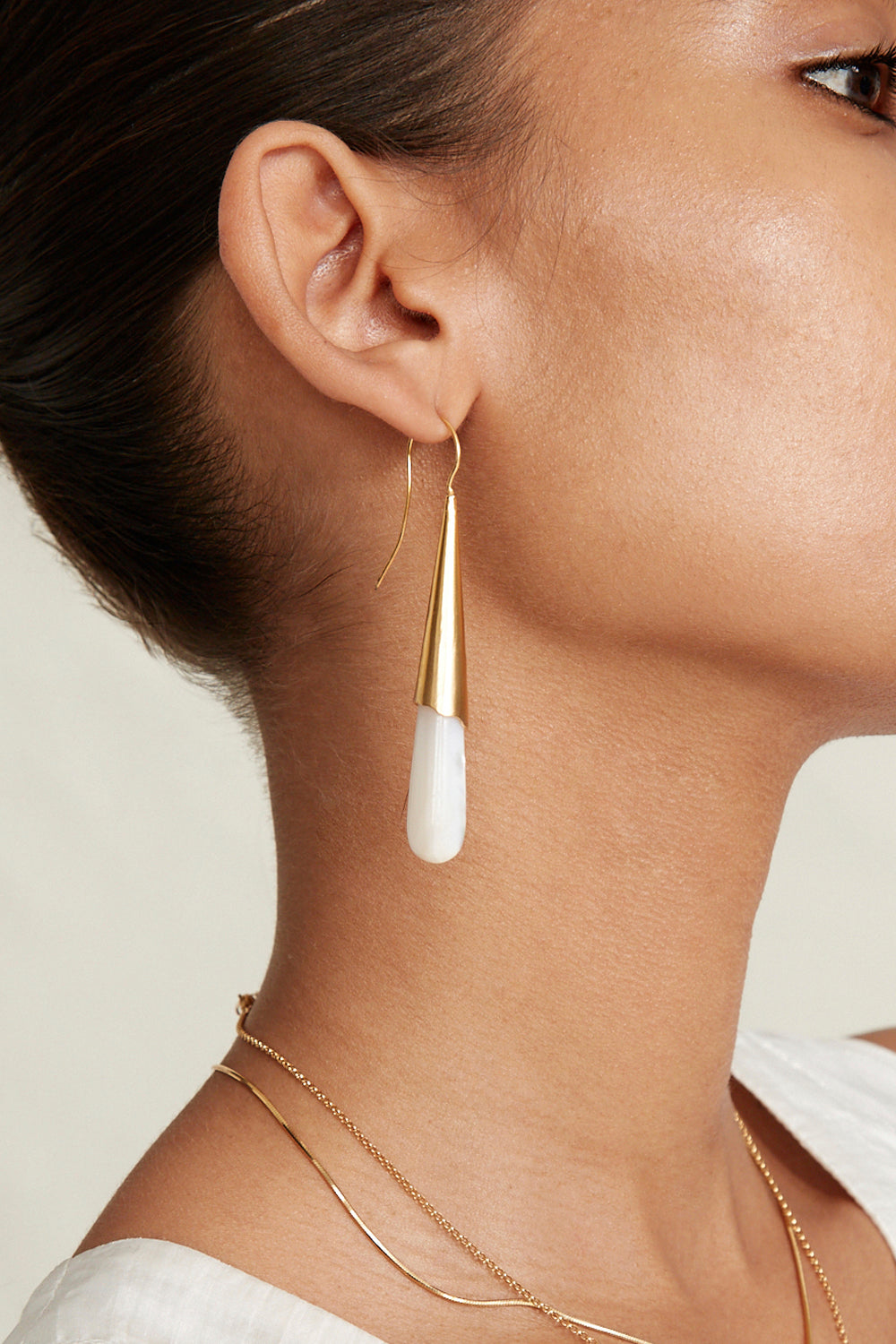 Sculptural and striking, the Luna Earrings embody modern elegance with a timeless twist. Each piece pairs a luminous elongated pearl with a sleek tapered gold cap, creating a dramatic silhouette that moves gracefully with every step. Bold yet refined, they’re the perfect bridal statement accessory.