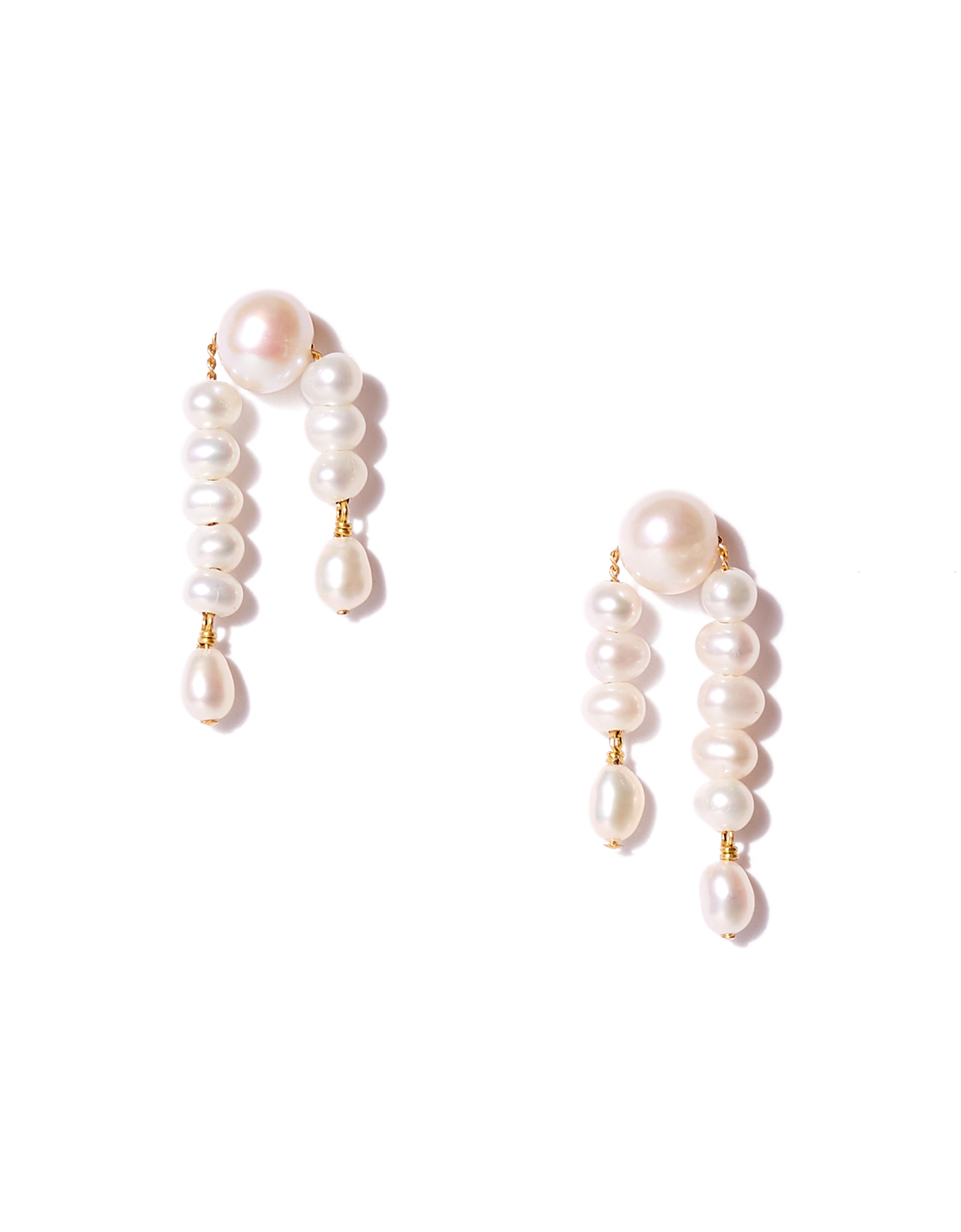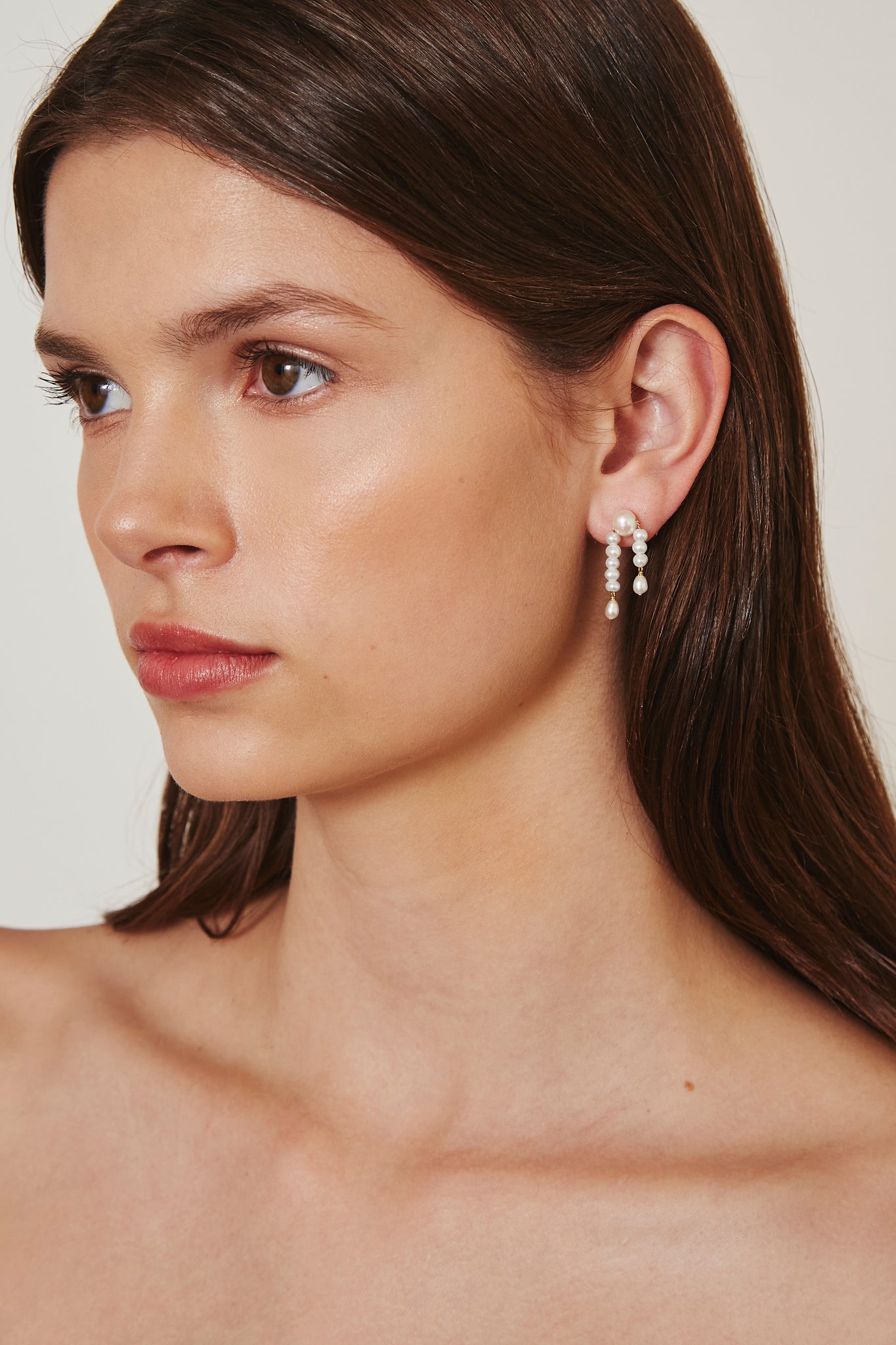Timeless yet modern, these cascading pearl drop earrings are designed to elevate any bridal look with effortless grace. Perfect for the bride who wants to blend classic romance with contemporary elegance, these earrings are a radiant choice for walking down the aisle and beyond.