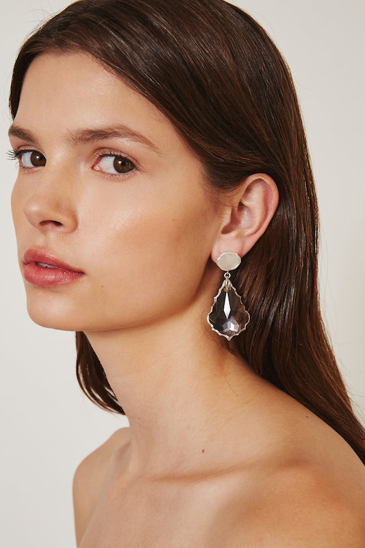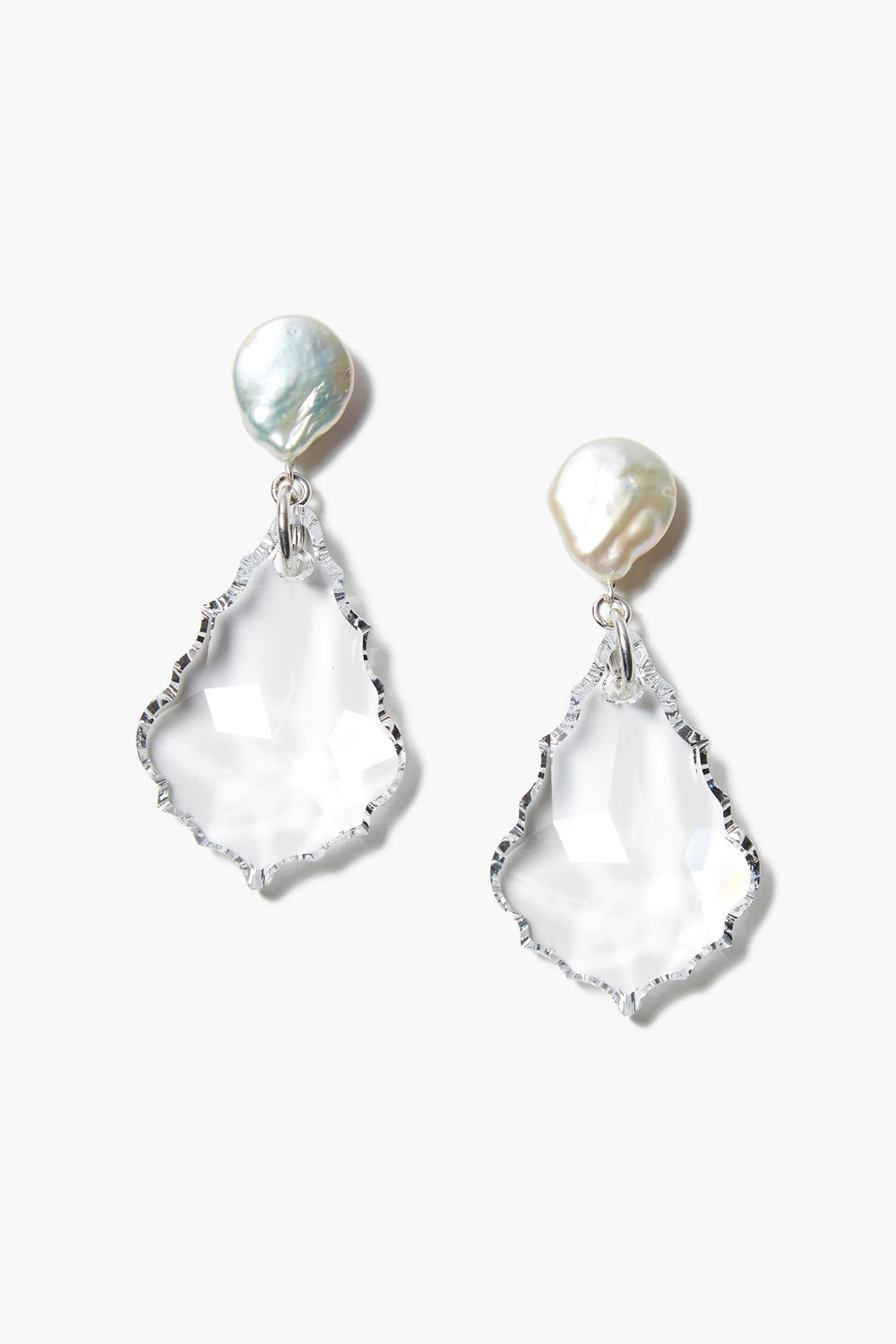 A striking balance of elegance and artistry, these earrings feature luminous pearls paired with faceted crystal drops. The organic beauty of the pearls contrasts beautifully with the sculptural, reflective edges of the crystals, creating a statement piece that captures light with every movement. Bold yet refined, they’re perfect for elevating both day and evening looks with a touch of modern glamour.